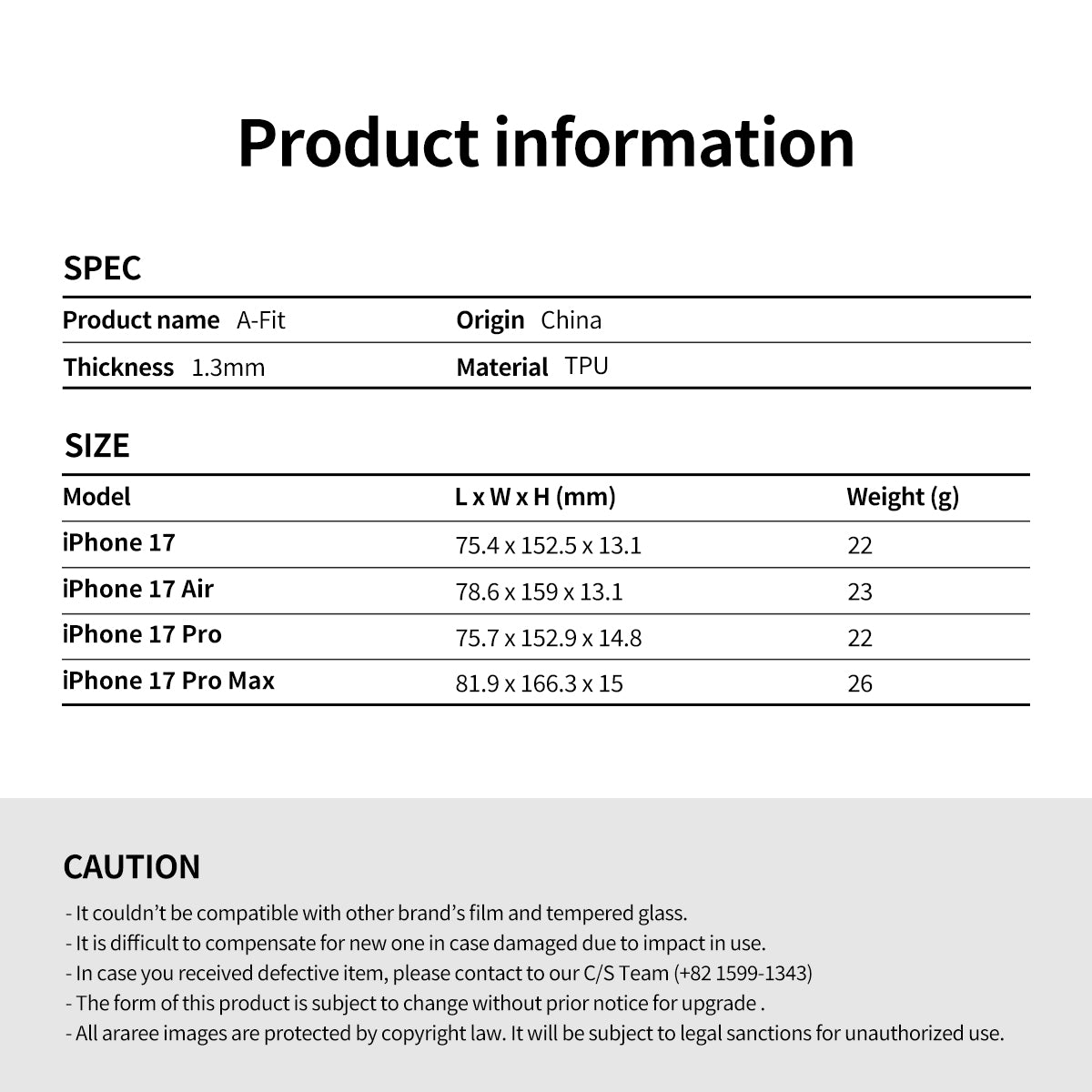 Araree A-FIT เคสใสเนื้อนุ่ม สำหรับ iPhone 17/ 17 Air/ 17 Pro/ 17 Pro Max วัสดุ TPU เกรดพรีเมียม