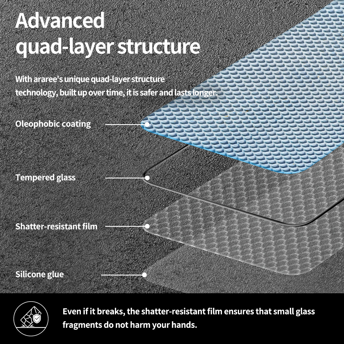 • มีชั้น Shatterproof Layer เวลากระจกแตก ไม่คมบาดนิ้ว