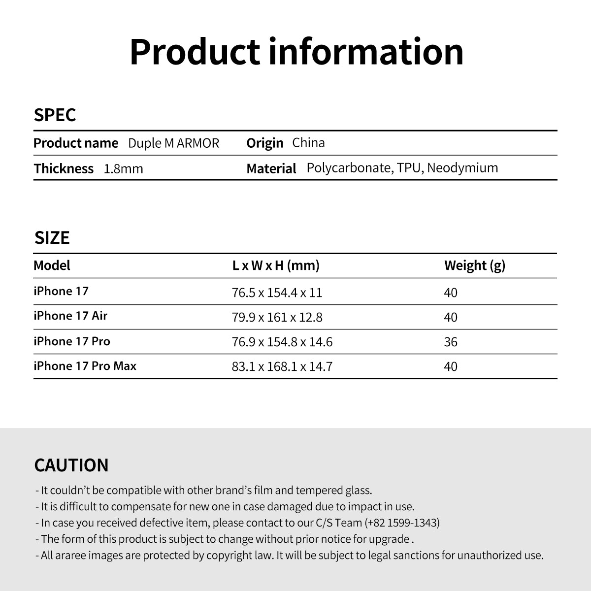 Araree Duple M Armor เคสกันกระแทก สำหรับ iPhone 17/ 17 Air/ 17 Pro/ 17 Pro Max มีแถบกันกระแทกที่มุมเคส