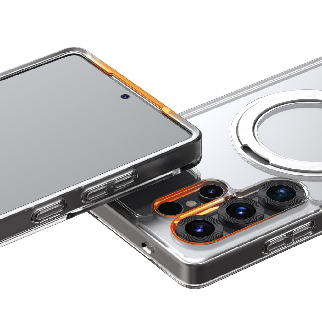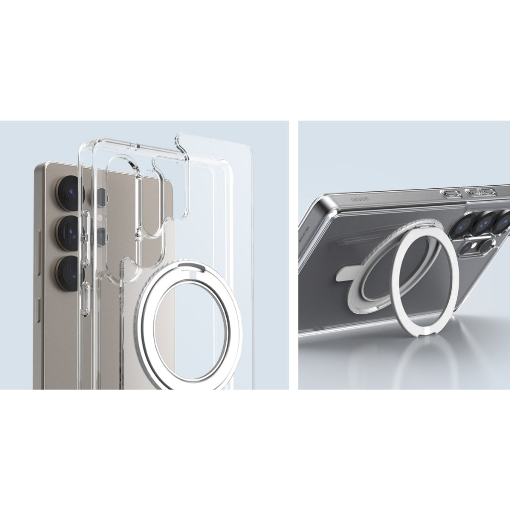 ผลิตจากโพลีคาร์บอเนตกับ TPU และมีแถบกันกระแทกเสริมทั้ง 4 มุม ปกป้อง Galaxy S25 Ultra ได้แข็งแกร่ง มีวงแหวนแม่เหล็กแรงสูง N54 สำหรับ MS ซึ่งกางออกมาเป็นขาตั้งได้ แถมหมุนได้ 360º ตั้งได้หลายมุม หลายระดับ วางได้ทั้งแนวตั้ง แนวนอน ใช้งานสะดวกสุด ๆ