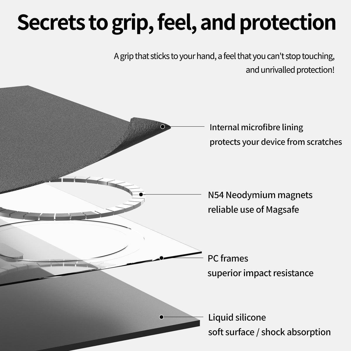 โครงสร้างเคสเป็นแบบ Triple Structure ได้แก่โครงพลาสติกแข็ง (PC) หุ้มด้วยยางซิลิโคน (Liquid Silicone) และบุด้านในด้วยหนังนุ่ม (Soft Inner Suede Lining) ช่วยให้ตัวเคสกันแรงกระแทกได้ดี และภายในเคสไม่สร้างรอยขีดข่วนต่อตัวเครื่อง