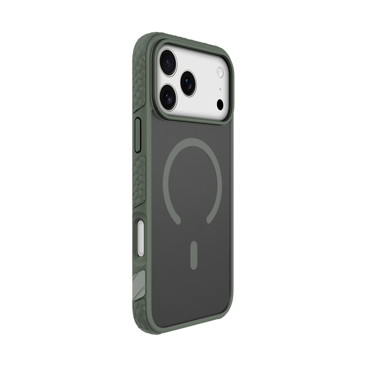 ฝาหลังผิว matte-clear (โปร่งแสงผิวด้าน) กับขอบข้างและปุ่มกด TPU กันกระแทก ที่เล่นสีหลากหลาย มีทั้งหล่อเท่ หรือสีสวยสดใสให้เลือก เคสยังผ่านการ drop-tested ที่ความสูงถึง 2 เมตร ได้มาตรฐาน Military grade ปกป้อง iPhone 17 Pro / 17 Pro Max ของคุณได้อย่างมั่นใจ แถมมีวงแม่เหล็กฝังในตัว ใช้งานกับอุปกรณ์เสริมแม็กเซฟได้อีกด้วย